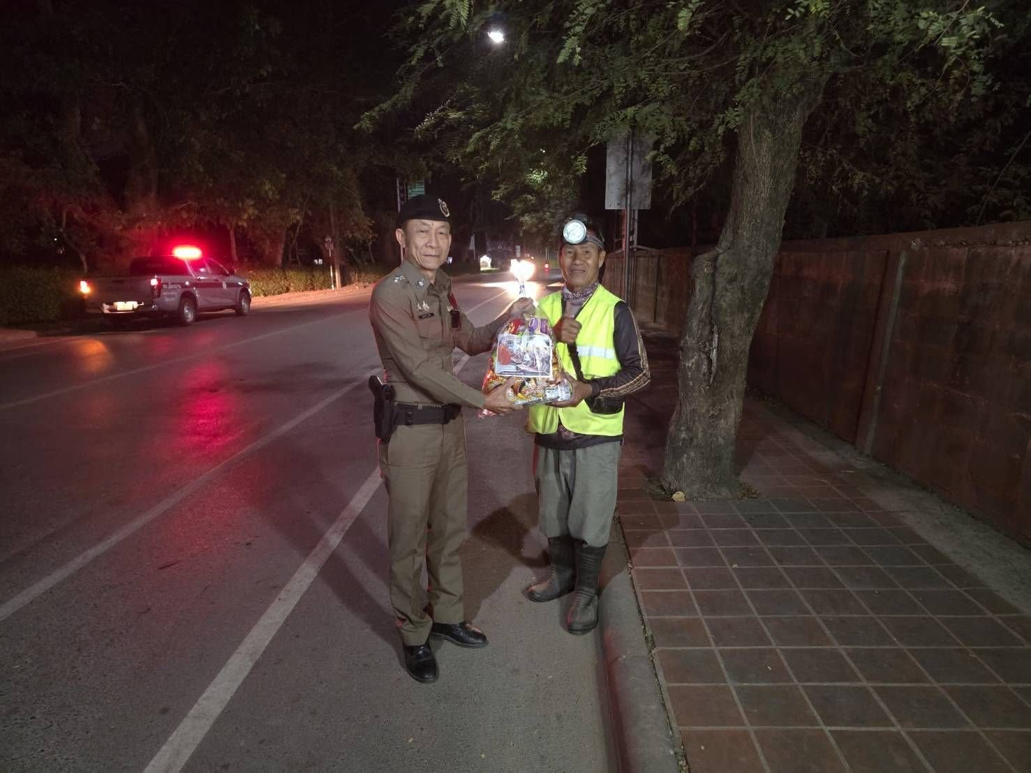 ร้อยเวร20 และสายตรวจจักรยานยนต์ นำสิ่งของไปแจกให้กับพนักงานทำความสะอาดในพื้นที่เทศบาลเมืองน่าน เพื่อเป็นขวัญและกำลังใจในการทำงาน