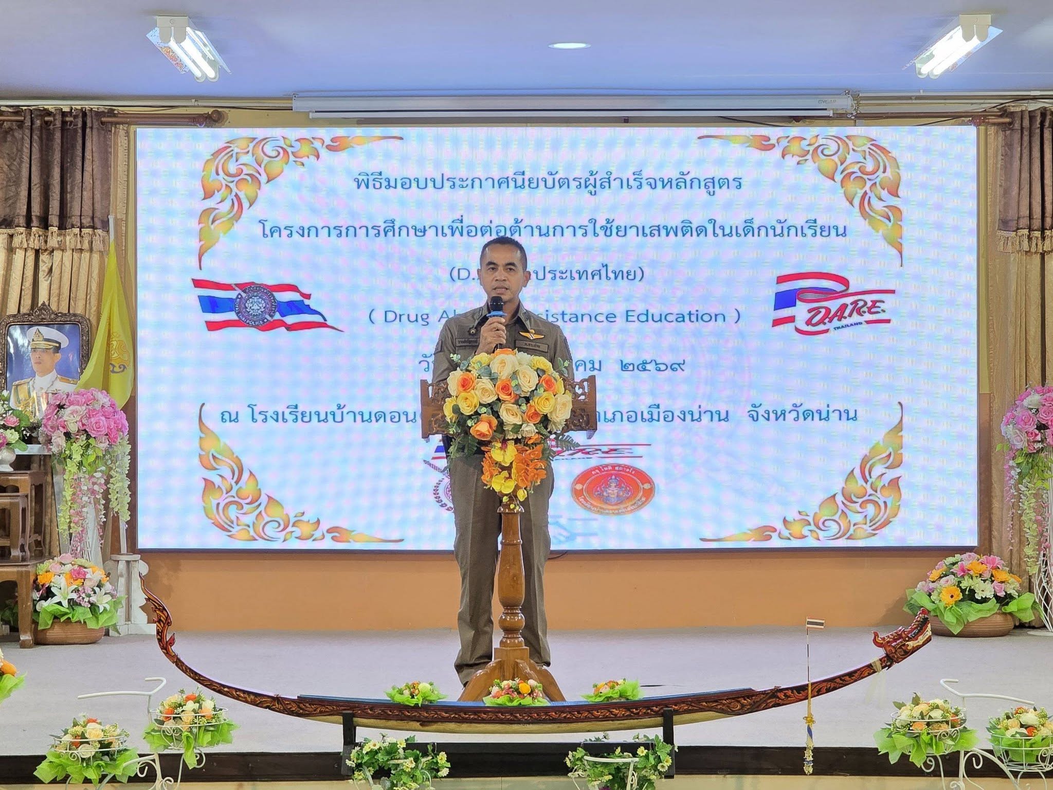 มอบใบประกาศนียบัตรให้กับนักเรียนผู้สำเร็จการศึกษา โครงการการศึกษาเพื่อต่อต้านการใช้ยาเสพติดในเด็กนักเรียน(D.A.R.E.ประเทศไทย)