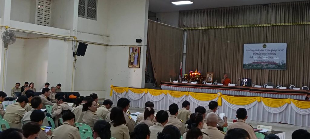 ประชุม ประจำเดือนกำนัน ผู้ใหญ่บ้าน อำเภอเมืองน่าน ณ ห้องประชุมอำเภอเมืองน่าน ประจำเดือน มีนาคม 2568