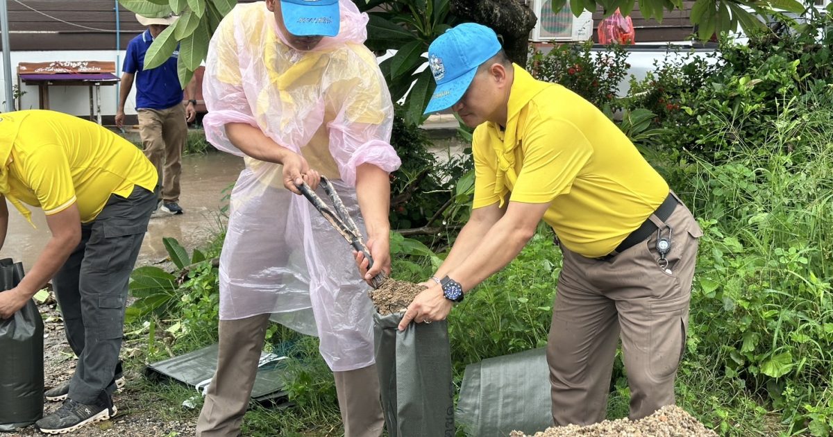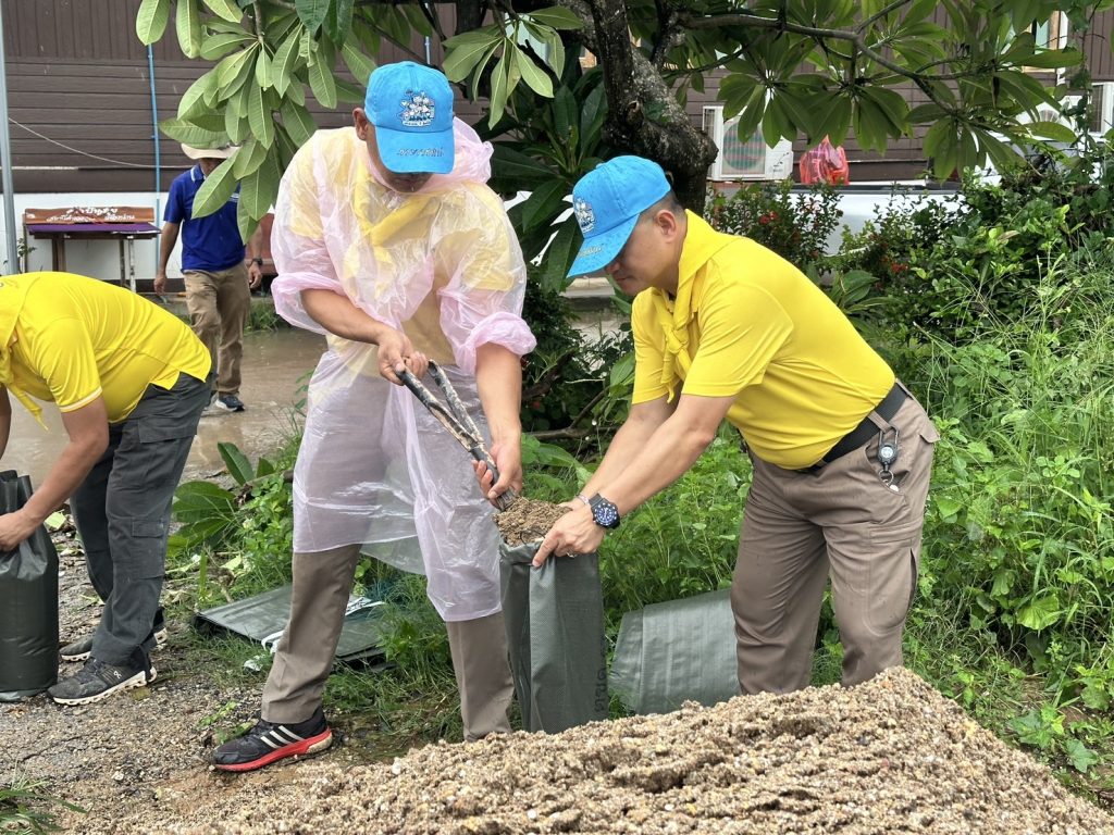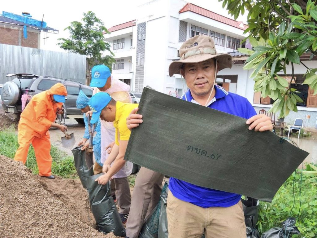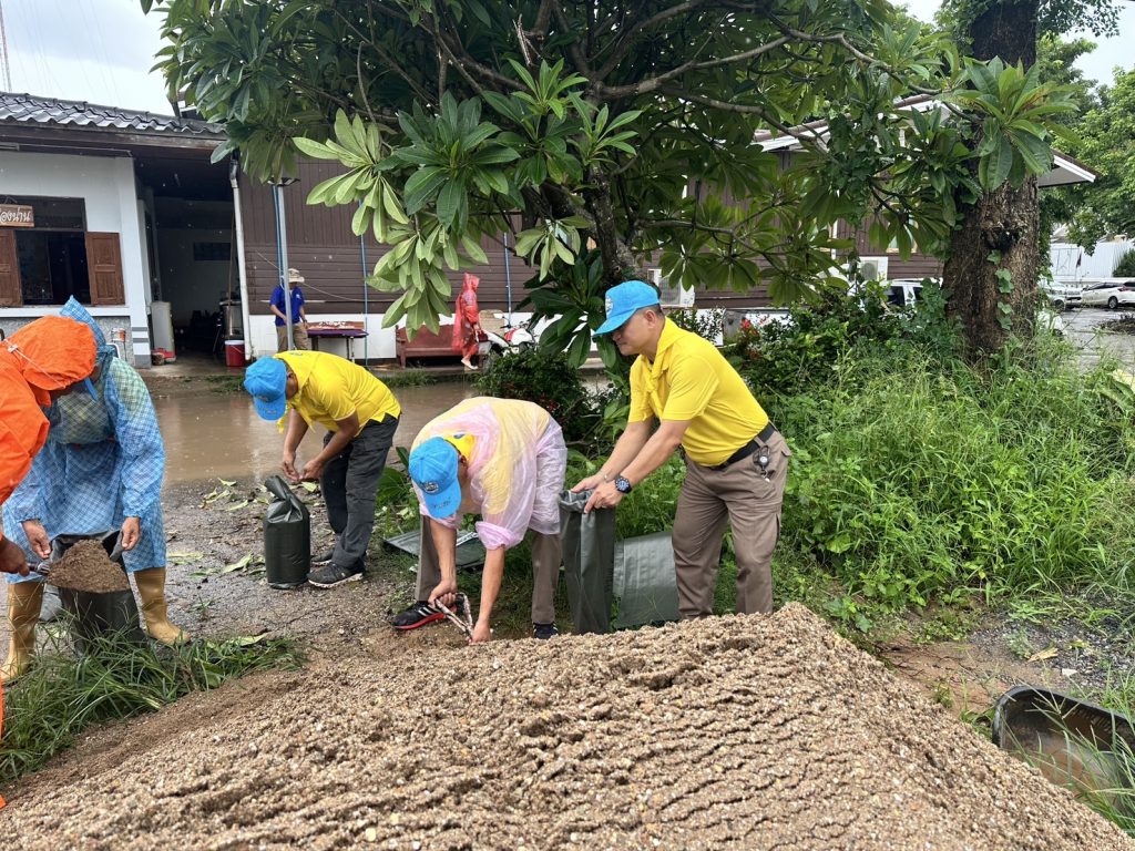 นำโดย พ.ต.อ.ชาญณรงค์ รัชตประทาน ผกก.สภ.เมืองน่าน มอบหมายให้ ชุดจิตอาสา สภ.เมืองน่าน ชุดที่ 2 ร่วมกัน จัดเตรียมกระสอบทราย จำนวน 200 ถุง ได้รับการสนับสนุน กระสอบทราย จาก กองร้อย ดชต.324 จำนวน 200 ถุง และ ทรายได้รับการสนับสนุนจาก ท่าทราย น่านศิลาทอง จำนวน 4 คิว เพื่อใช้การป้องกันน้ำท่วมแก่ประชาชนและข้าราชการตำรวจสังกัด สภ.เมืองน่าน