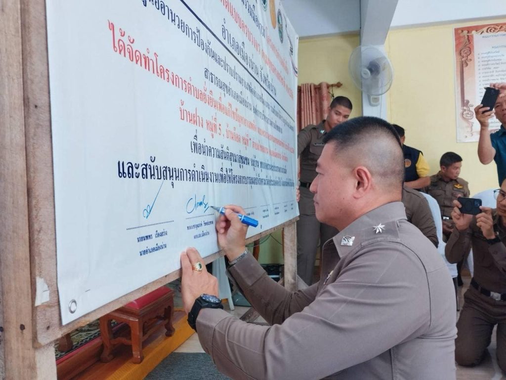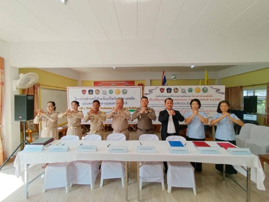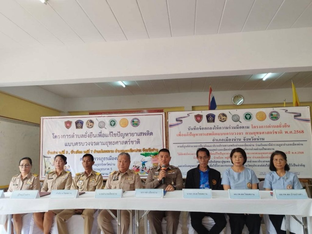 นำโดย พ.ต.อ.ชาญณรงค์ รัชตประทาน ผกก.สภ.เมืองน่าน ,พ.ต.ท.จักรพงษ์ วงค์ไชย รอง ผกก.สส รรท.รอง ผกก.ป.สภ.เมืองน่าน ,พ.ต.ต.กานต์ณัฐกรณ์ กุณา สวป.(ชส.)สภ.เมืองน่าน และ ว่าที่ พ.ต.ต.ประเสริฐ ค่ายอาจ สว.ป.สภ.เมืองน่าน พร้อมด้วยชุดปฏิบัติการชุมชนและมวลชนสัมพันธ์ สภ.เมืองน่าน ร่วมด้วย นายอำเภอเมืองน่าน ,ผอ.รพ.สต.ไชยสถาน ,ผอ.รพ.สต.ปางค่า ,นายกองค์การบริหารส่วนตำบลไชยสถาน ,กำนันตำบลไชยสถาน ,ผู้ใหญ่บ้านบ้านฝาง หมู่5 และ ผู้ใหญ่บ้านบ้านก็อด หมู่7 ตำบลไชยสถาน จัดทำพิธีเปิดโครงการตำบลยั่งยืน เพื่อแก้ไขปัญหายาเสพติดแบบครบวงจร ตามยุทธศาสตร์ชาติ ประจำปีงบประมาณ พ.ศ.2568 ได้ร่วมลงนามบันทึกข้อตกลงความร่วมมือ (MOU) และร่วมกันประชาคมหมู่บ้านตามโครงการฯพร้อมทั้ง ดำเนินการตรวจปัสสาวะผู้นำชุมชน คณะกรรมการหมู่บ้าน เพื่อความโปร่งใสและเป็นแบบอย่างให้กับประชาชน ผลการตรวจ ไม่พบสารเสพติดแต่อย่างใด