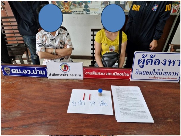 สถานที่จับกุม บ้านเลขที่ 43 ม.12 ต.สะเนียน อ.เมืองน่าน จ.น่าน