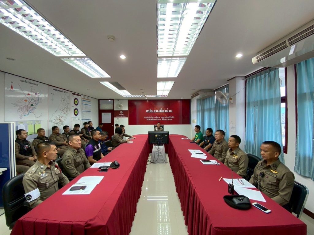 สภ.เมืองน่าน ทุกสายงาน ประชุมซักซ้อมแผนและซักซ้อมแผนเผชิญเหตุคนร้านประทุษร้ายต่อ ร้านทอง